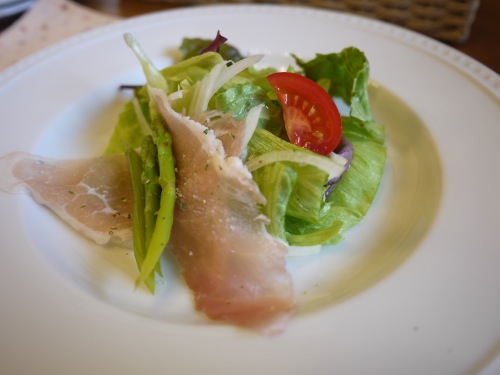 前菜は生ハムのサラダです。