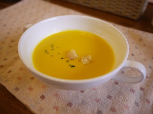 スープは南瓜のスープです。甘すぎず美味しかったです。