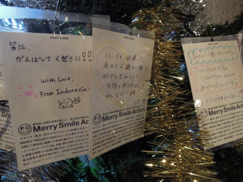 クリスマスツリーにはMarry SmileActionのカードがありました。