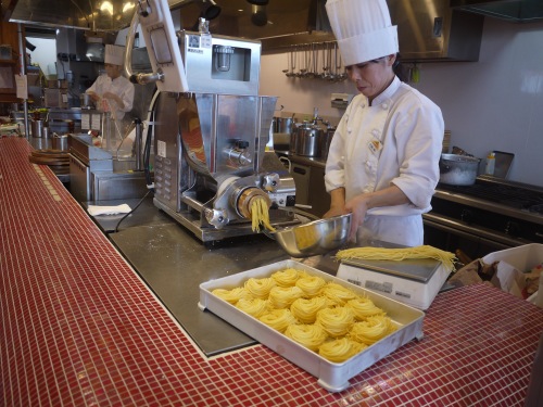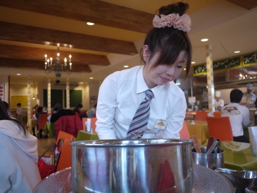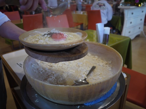 パスタもワゴンで持って来てからチーズを載せます