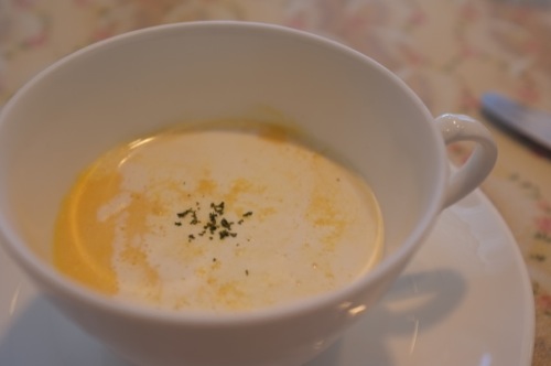 スープはカボチャの冷たいスープだったのですが、あまりかぼちゃの味が出っ張らないで私はとてもおいしかったです。
