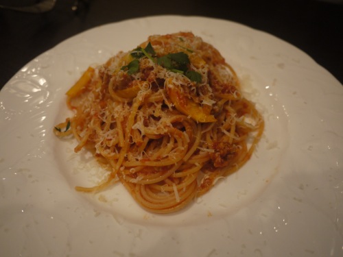 パスタランチのパスタはえごま豚ラグーとズッキーニのトマトソース•スパゲティ