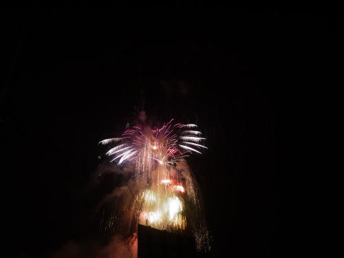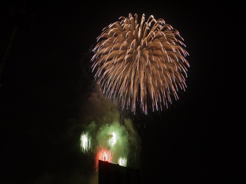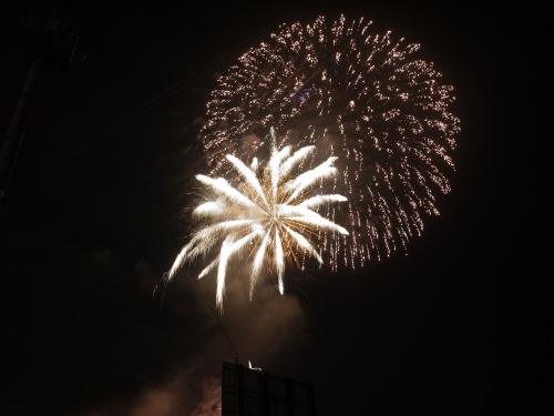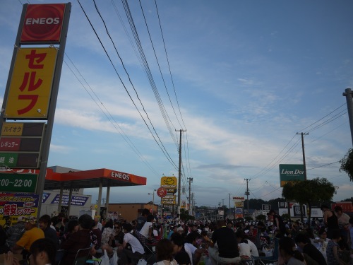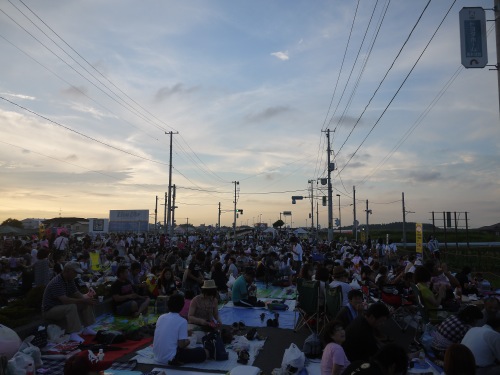 福島空港の着陸が遅れているという事で花火大会も始まるのが遅れるアナウンス。