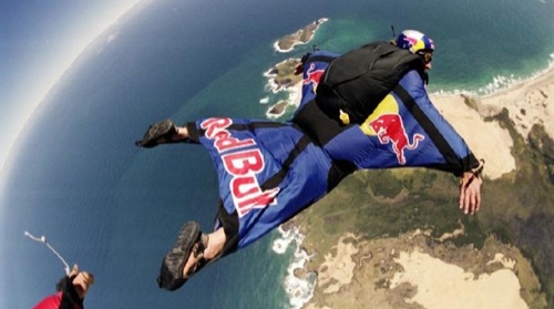 ウイングスーツで飛んでいるシーンがあって、それは実際に飛んでいる姿をYouTubeで見たことがあります。