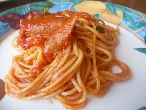 ナポリタンは茹で置きしているせいかうどんのようでした。