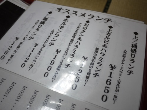打ち合わせが終わって、前もって調べておいた焼き肉屋さん松牛に行きました。