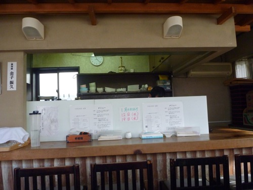 居抜きで借りた様子で中はまったく同じです。違うと言えば一つだけあるテーブルとカウンターと厨房の間に、ホームセンターで売っているセルロイドみたいなで仕切りがあることくらいですね。