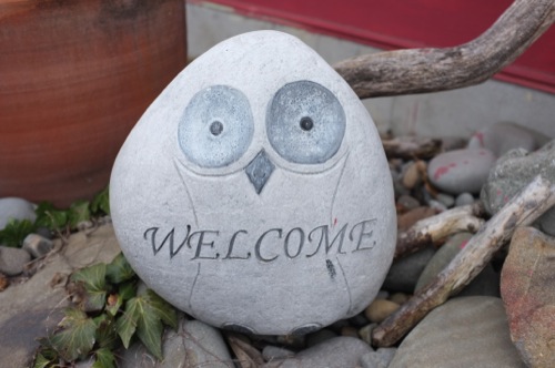 WELCOMEの石像も可愛いですね。フクロウでしょうか?(^^)