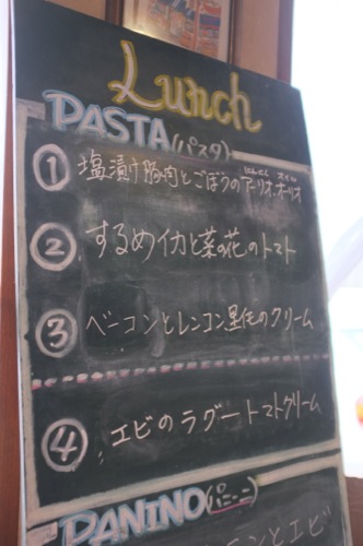 メニュー①の塩漬け豚肉とごぼうのアーリオ・オーリオというのがとても気になりますね。