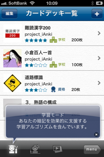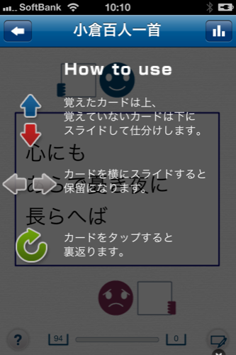 自分がやりたいのを選んで、記憶したのは上にスライドして覚えてないのは下に分けます。