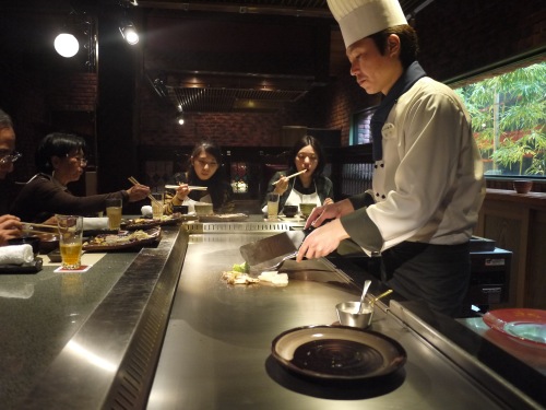 入るとステンレスの鉄板で焼くようになっていてそれが二カ所ありました。