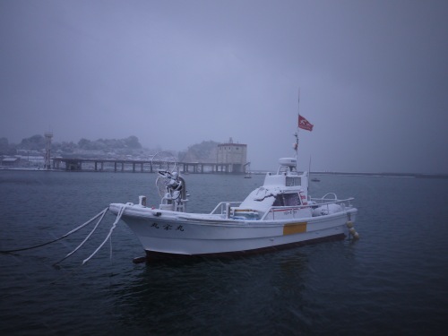大津港の船にも雪が