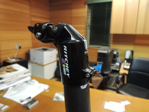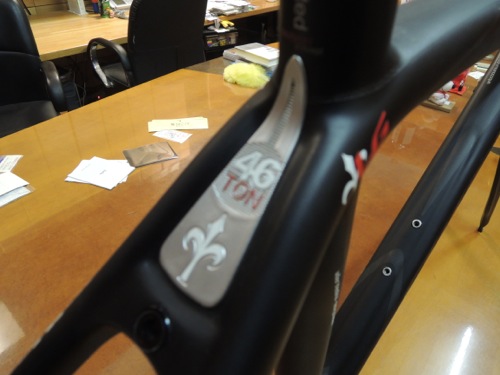 現在、専用のシートピラーを使うとBB~サドルトップまで645mm~665mmの範囲で調整できます(セライタリア・フライトの場合。多少の誤差はご容赦下さい)。シートピラーをカットすればさらに下げることができます。31.6mmのシートピラーを使用すれば、さらに高くすることもできます(31.6mmピラーを使う場合、シートチューブに割りを入れるなどの加工が必要な場合があります)。コラムはヘッドパーツの上から40mm残っています。定価44万円のハイエンドモデルです。