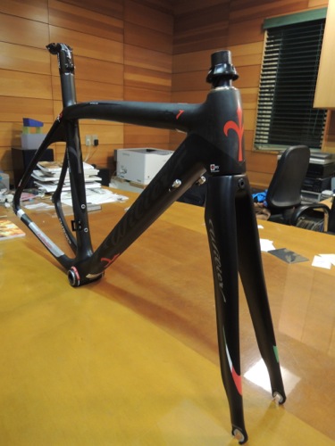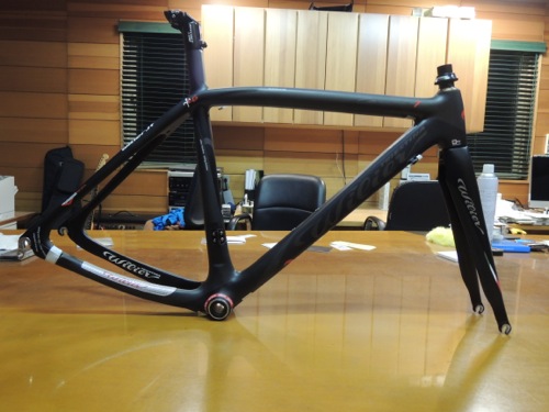 ウィリエール・チェントウノのフレームセットです。世界選手権を制覇したこともある名機です。2012年モデルでカラーは希少なマットブラックです。走行距離は100kmほどで、傷もなくかなりの美品です。サイズはSで、トップチューブ(水平換算)は525mmです。165cmから170cm台の人に適するサイズだと思います。