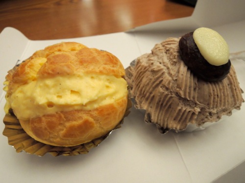今回はこれから蕎麦を食べに行こうと思っているので、シュークリームとモンブランを買いました。