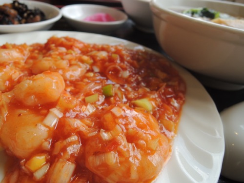テーブルの向かいに座った夫婦は色々食べていました。