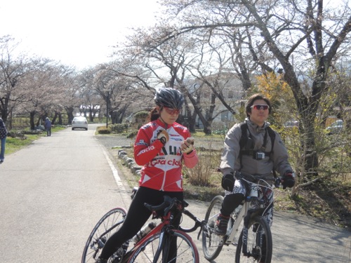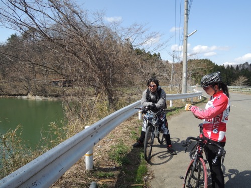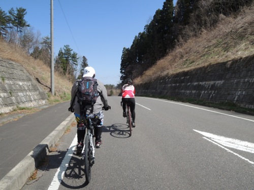 北西の風が強くて向かい風で、ペースはかなりをしたのだけれども、レースでの集団走行の話などしながらさしずめみーさんがさしずめエース役かな?なんて話しながら向かい風の中を走りました。