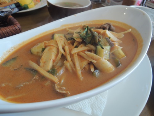 ランチはタイの店に行きました。タイ式マッサージもやってるって書いてありました。