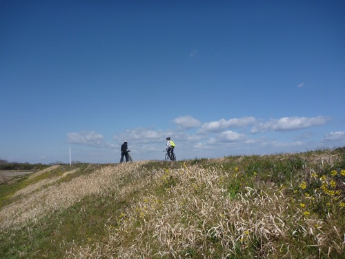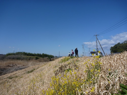 土手には菜の花が咲いて春を感じさせます。