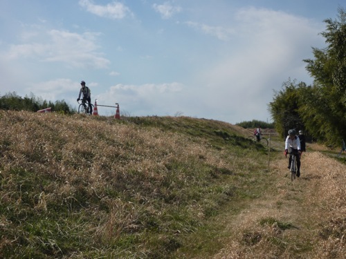 サイクリングロードが工事で通れないので草むらを走って移動(^_^)