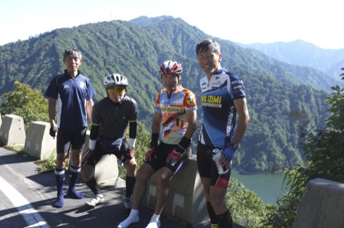 田子倉ダムには四人の新潟から来たローディーがいて休んで居ました。