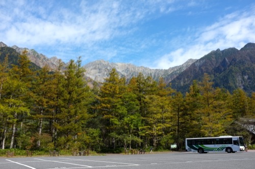 上りに時間をかけすぎたので、車で上高地の手前まで行き釜トンネルとを通って上高地に向かいました。