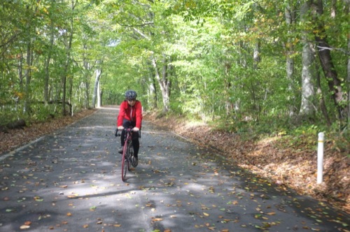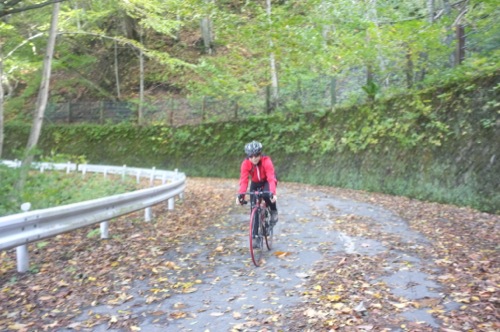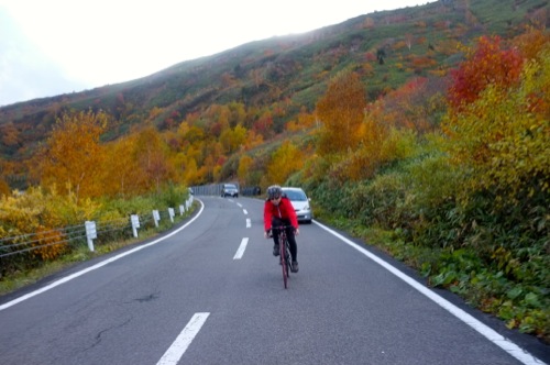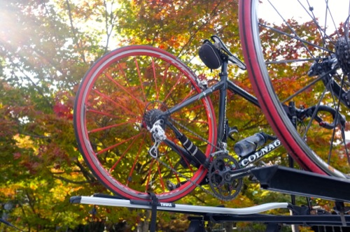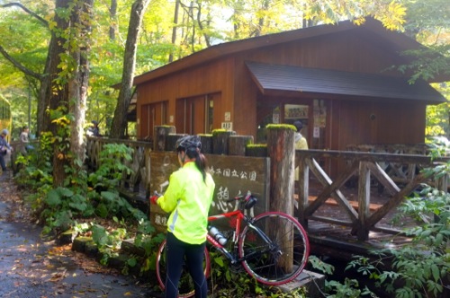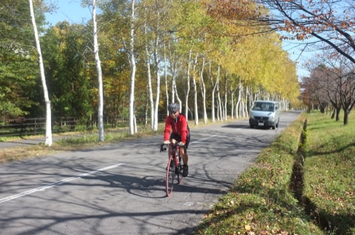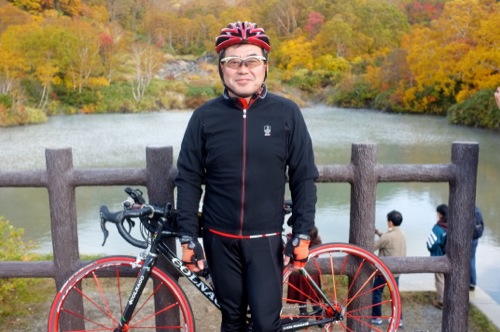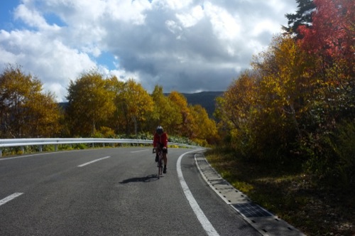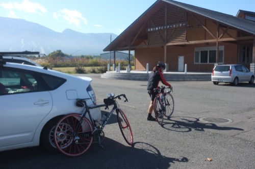 折角の紅葉なので自転車を車から下ろして温泉まで走ることにしました。(^^;