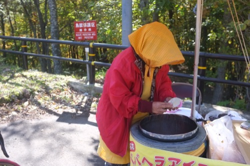 暫く登ると男鹿半島で見かけるというババヘラのおばさんがいました。