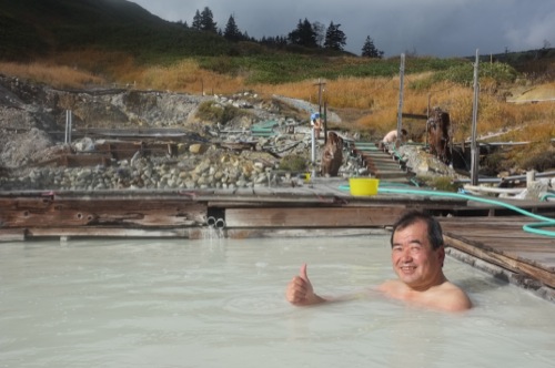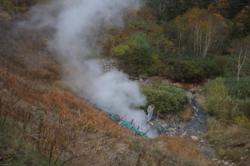 硫黄のにおいがすると思ったら道路脇から温泉が出ていました。