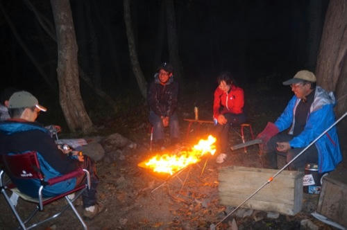 そうだ、車のライトを使えばいいと車のライトでテントを張りました。(^^)