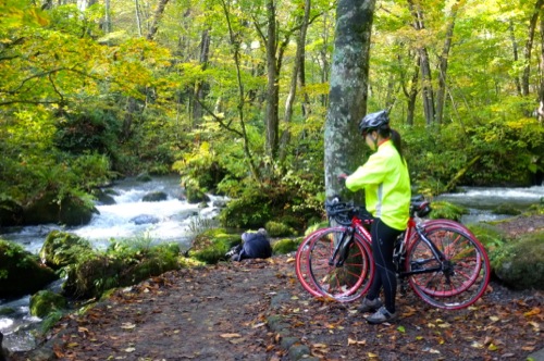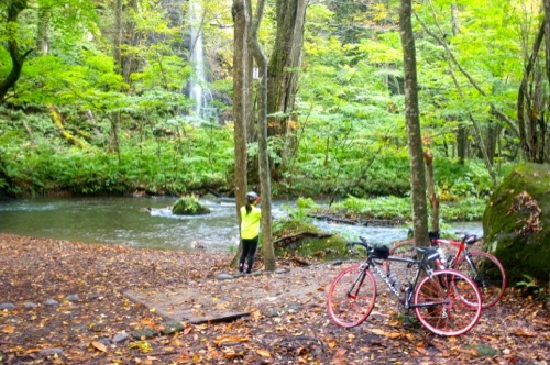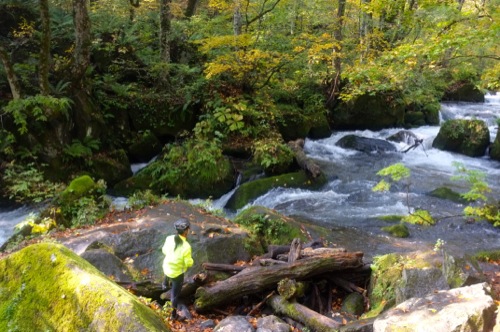 車をキャンプ場の近くに置いて奥入瀬渓流を走ることにしました。