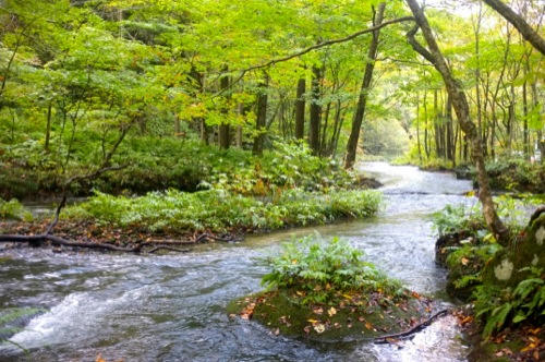 奥入瀬渓流は紅葉はまだで緑が奇麗でした。(^^;