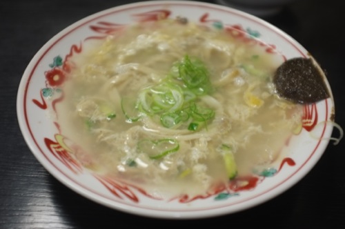 ちーたんは先に作ってもらったスープを混ぜるか、食べている途中で卵を混ぜて、「おねがいします」お店の人を読んで湯汁を足してもらいますよ。