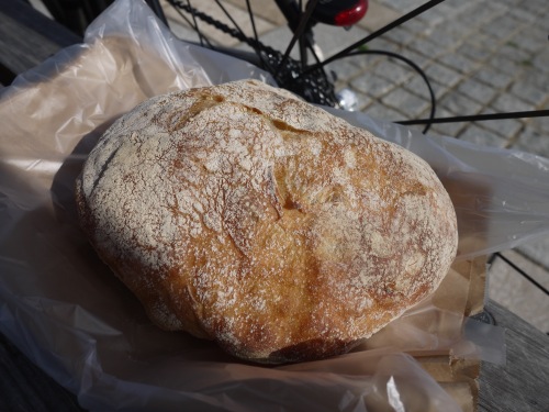 買ったパンを海を観ながら食べました。