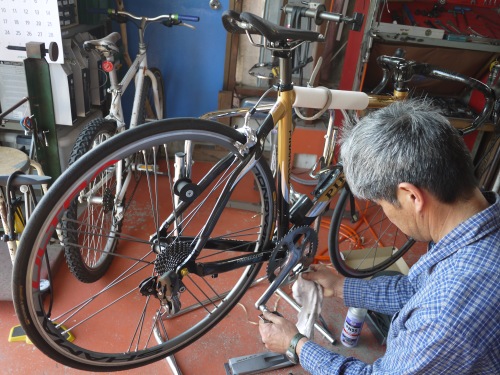 自転車の話になり、ご主人もサーベロを乗っているという事でわざわざおろしてみせてくれました。