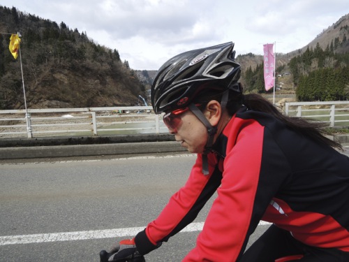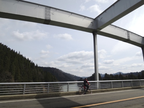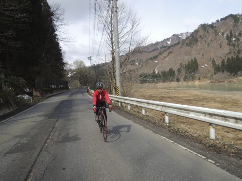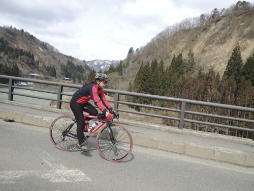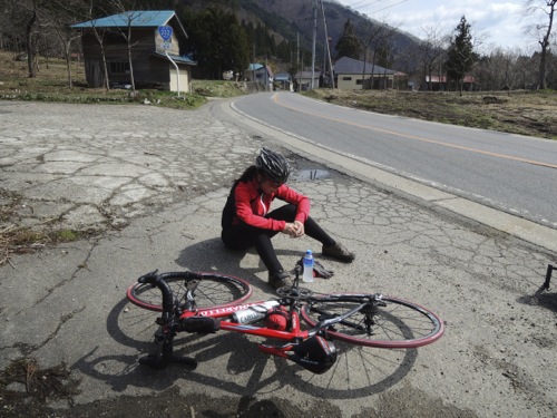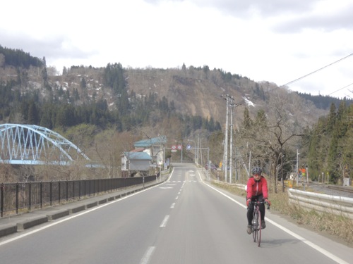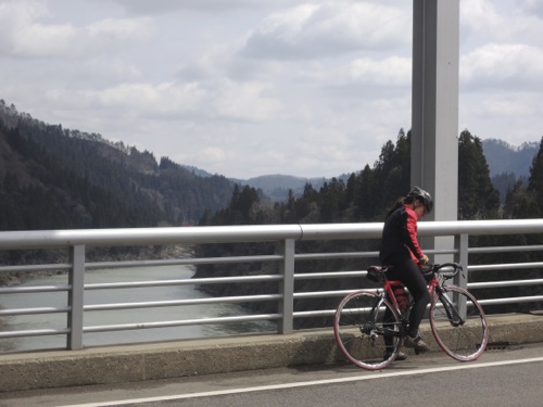 会津川口について自転車を組み上げたら、車から女の子が顔を出して「走るところが見たい」と言って来ました。