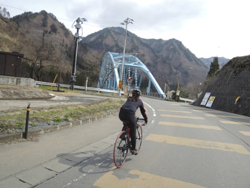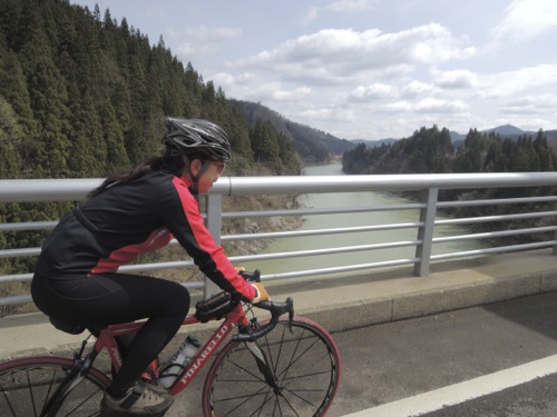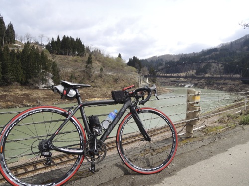 前に喜多方に行った時に通った河川沿いのサイクリングロードを走りました。