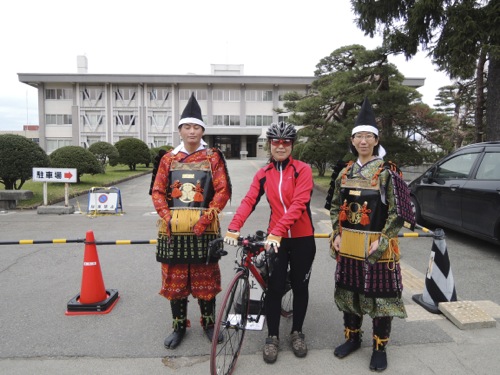 武者姿の観光案内の人が2人いたので記念写真を撮らせてもらいました。