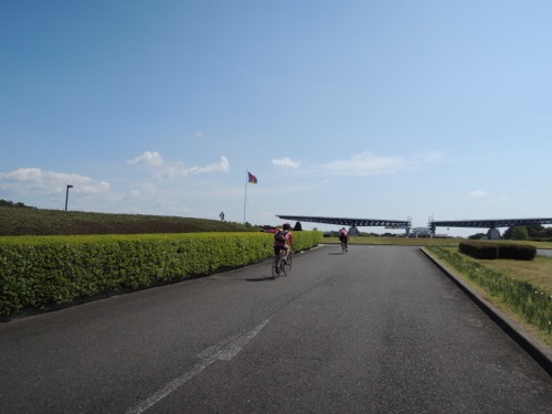サイクリングロードを通って千波湖へ向かいます。