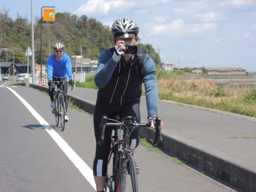 集合はその少し手前で女性のローディーが交差点で止まってました。