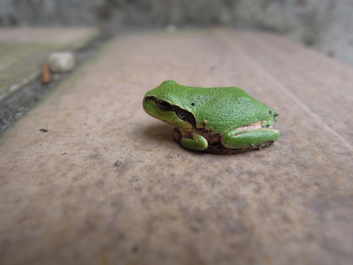 帰ってくると、階段の途中に小さい雨蛙が(^_^;