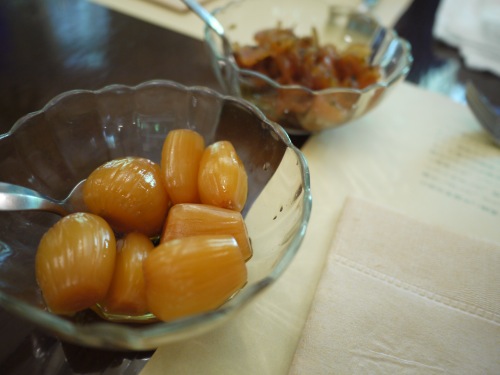 先にカレーのらっきょうと福神漬けが出てきました。