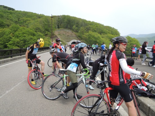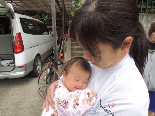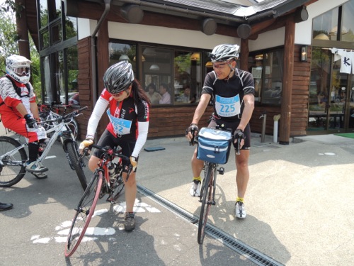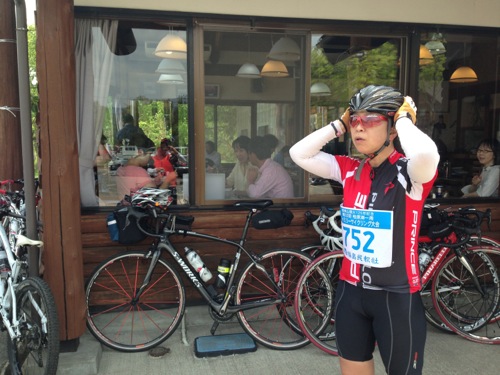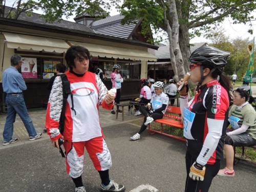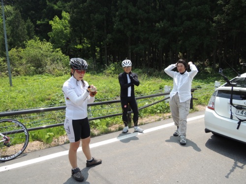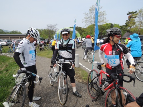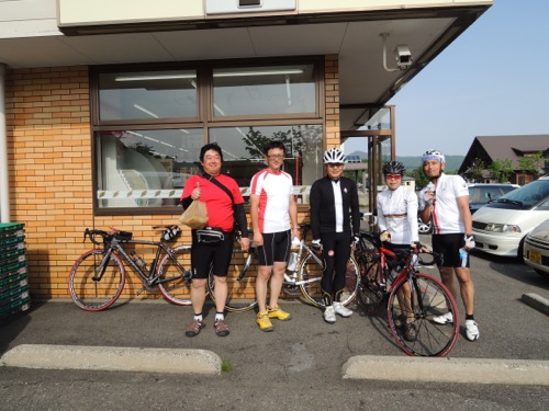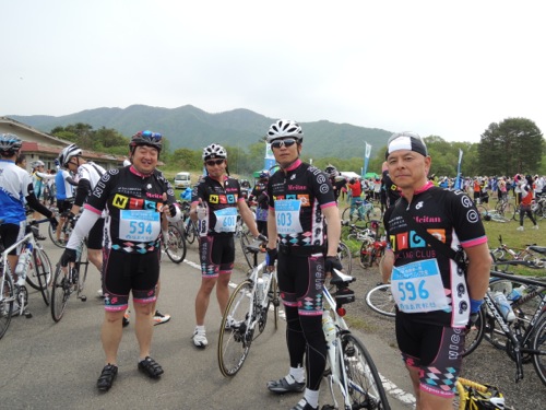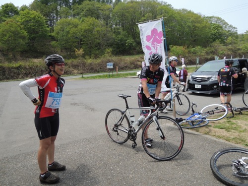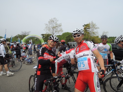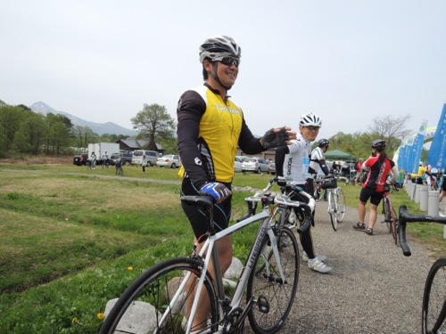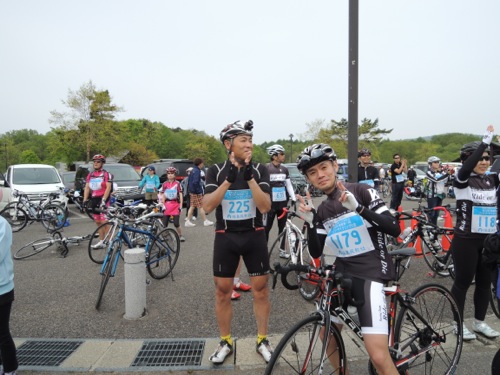 そこで話に混ざって、バイクの人たちが出発してからローディーと記念写真を一緒に撮ったのですがも、話を聞くと会社のチームで明日のファミサイに参加するという事です。