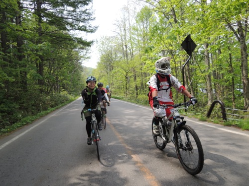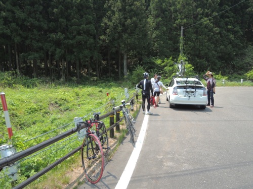 猪苗代湖に入る勢至堂の上の途中でTOYBOXさん達が追い付いてきました。