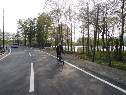 昨日のコースを逆に走るような形で猪苗代湖の脇を通って勢至堂へ向向かいました。