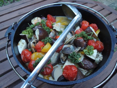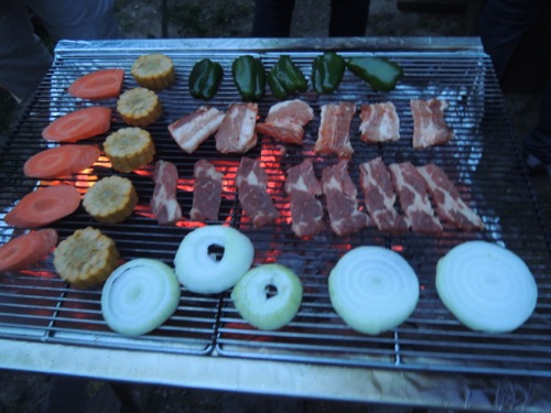 バーベキューの準備も出来て、いつもの純ちゃんの近所の阿部ちゃんのドッチオーブンでの美味しい料理も出来ていました。。