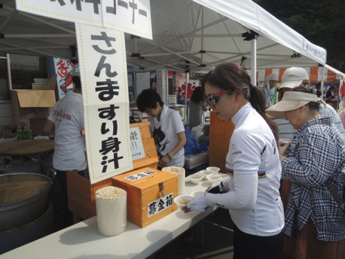 まずさんまのつみれ汁が無料でやっていたので、寄付金を入れて食べました。