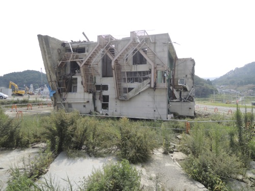 波が引いたときに倒壊したと言う鉄筋コンクリートの建物が横たわっていました。