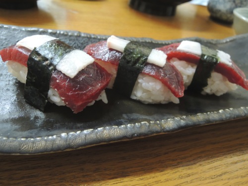 あと、鯨の寿司が一貫200円だったのでそれも注文しました。