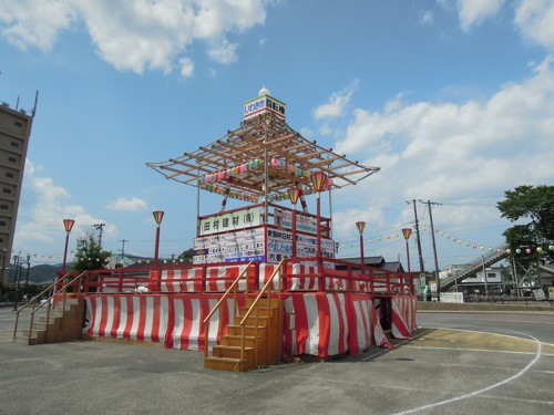 内郷駅前の盆踊りの櫓がまだそのままになっていました。